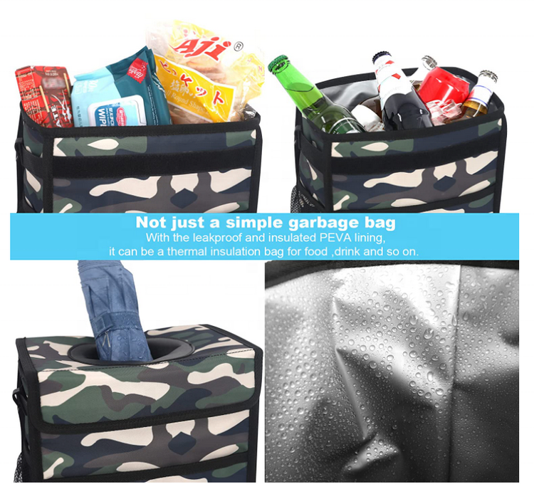 Lar / Produtos / Bolsa Organizadora / organizador de carro / 2,5 galões portátil mini saco de lixo para carro pendurado dobrável à prova d' água lata de lixo do carro com tampa