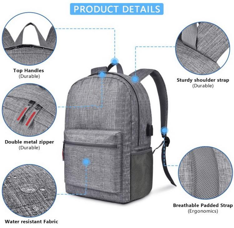 | Nome | Grande mochila escolar de viagem com porta de carregamento USB | ||||||