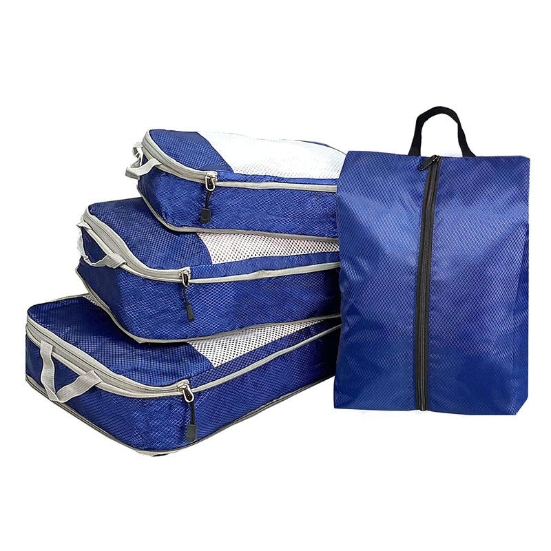 Lar / Produtos / Mala de viagem / Cubos de embalagem de viagem / Bagagem de compressão personalizada ultraleve à prova d'água 4 peças organizador de armazenamento de roupas íntimas cubos de embalagem de viagem para pacote