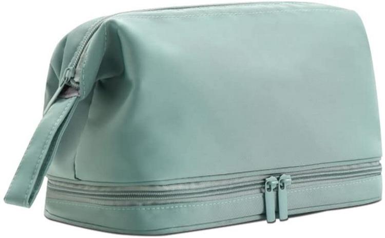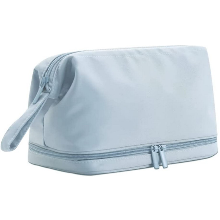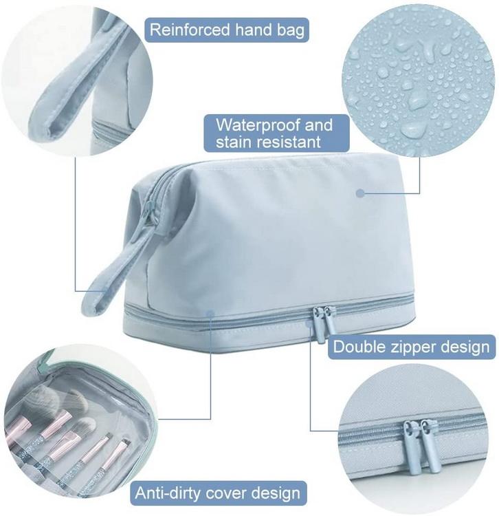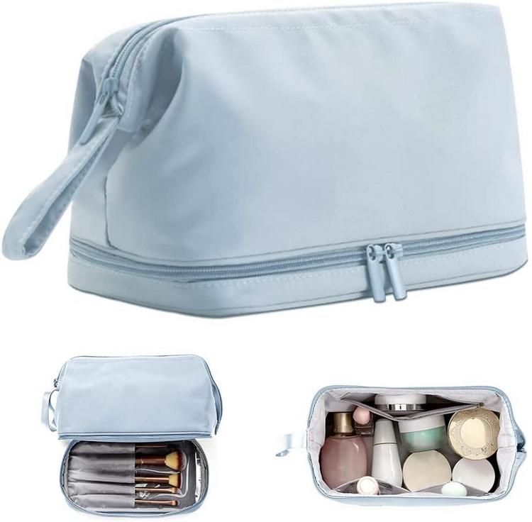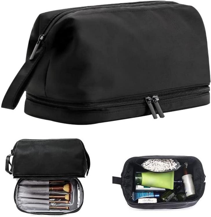 Bolsa cosmética multifuncional de náilon de camada dupla à prova d'água bolsa de viagem com logotipo personalizado bolsa de maquiagem de duas camadas