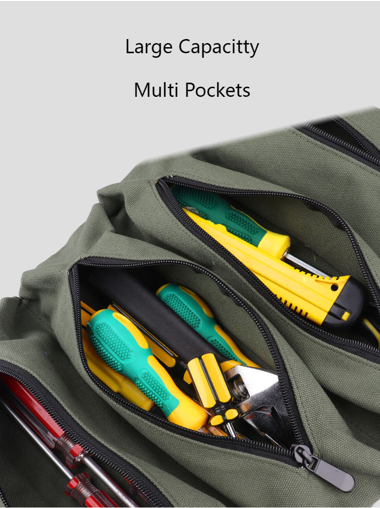 | Nome | Bolsa de ferramentas de lona de grande capacidade bolsa de armazenamento de ferramentas de suspensão de carro resistente 5 bolsas bolsas de reparo de eletricista | ||||||