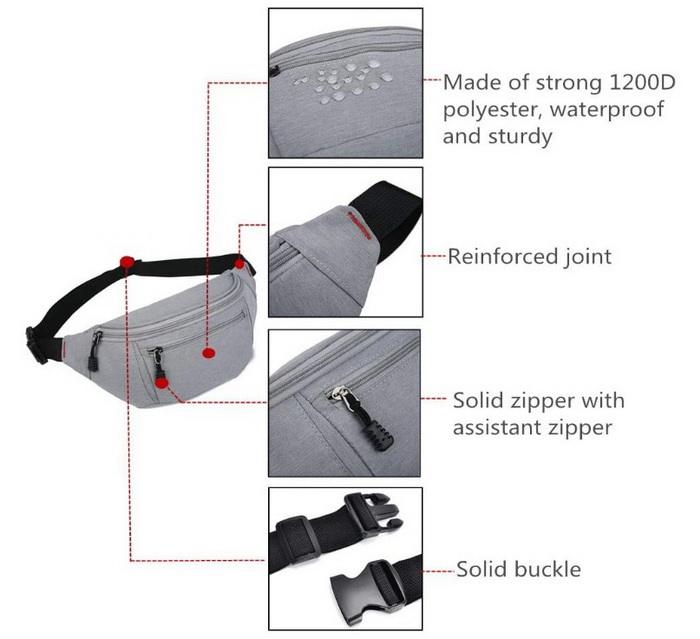 | Nome | Bolsa de peito com vários bolsos à prova d'água bolsa tiracolo unissex bolsa de cintura pochete ao ar livre | ||||||