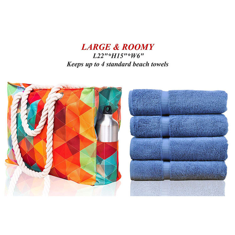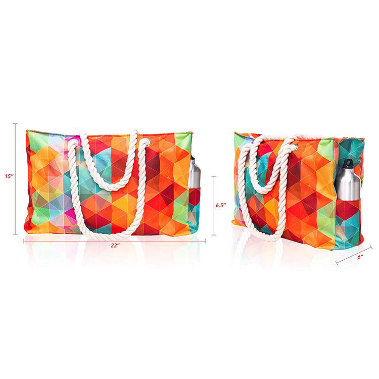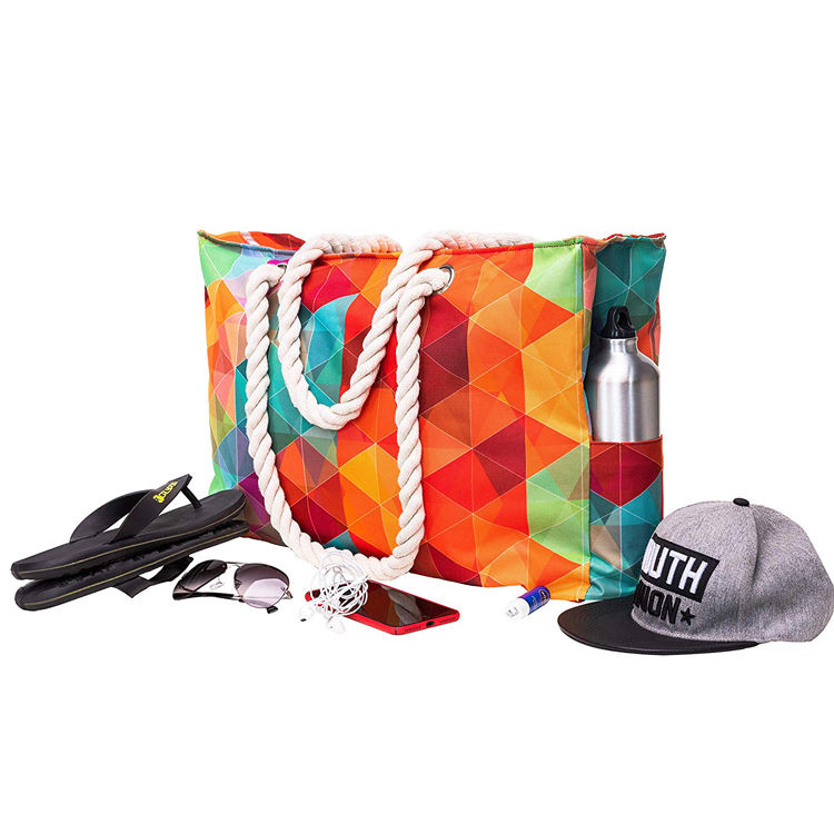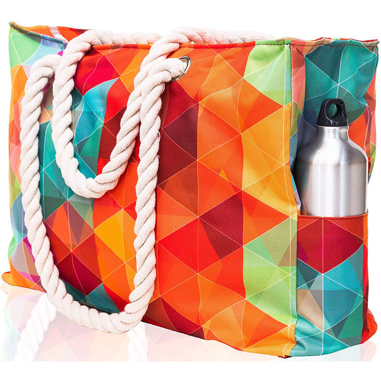 Bolsa de praia com alças de corda de algodão à prova d'água para o verão