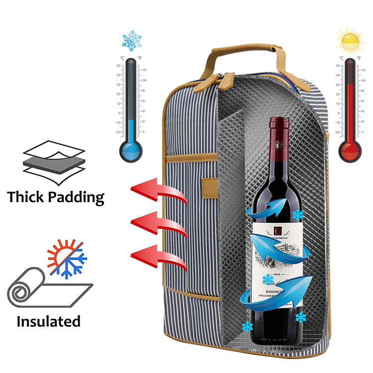 Bolsa térmica para garrafa de vinho Suporte para vinho de piquenique Bolsa térmica com isolamento de gelo com logotipo personalizado