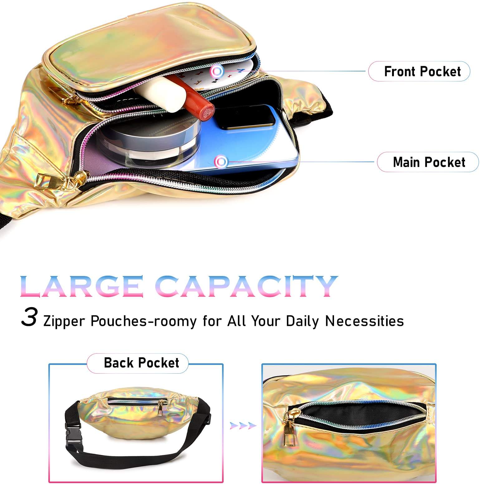 Lar / Produtos / Fanny Pack / Bolsas de viagem elegantes para caminhadas femininas com logotipo personalizado ouro crossbody bolsas brilhantes bolsa de cintura em pvc pochete