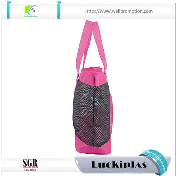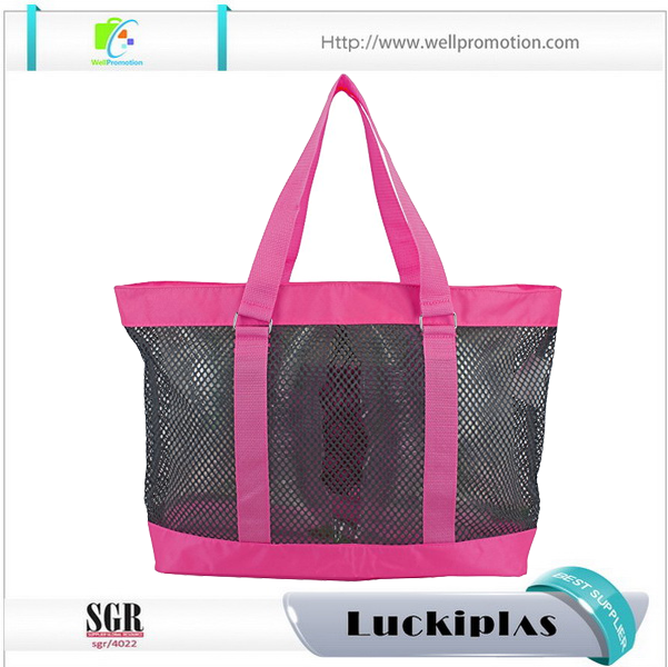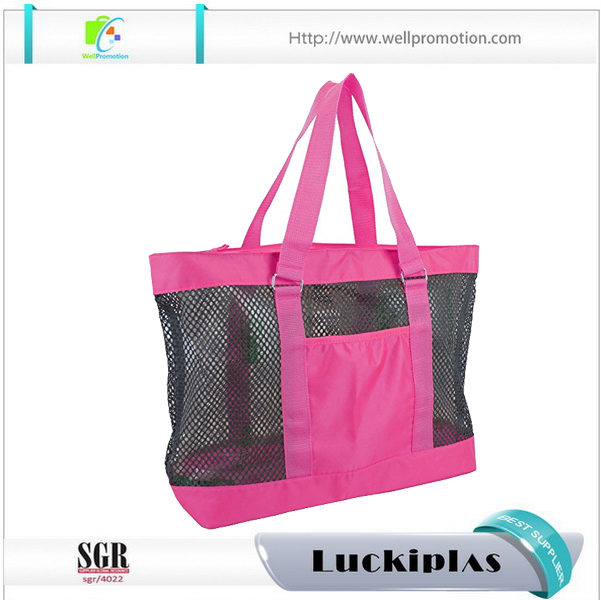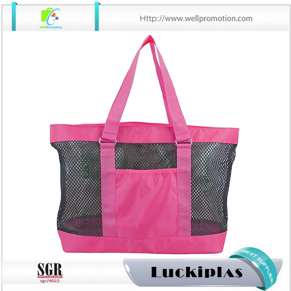 Bolsas femininas cor-de-rosa por atacado sacola de praia de malha com bolso frontal aberto