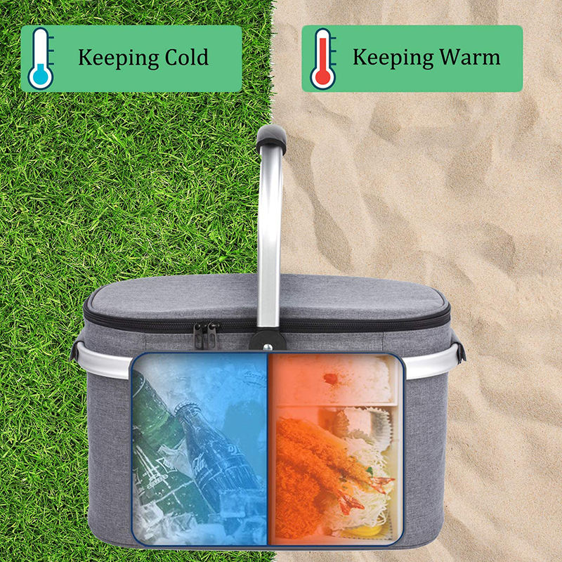 Cestas térmicas grandes para viagem em família, cesta de piquenique dobrável à prova de vazamentos com tampa