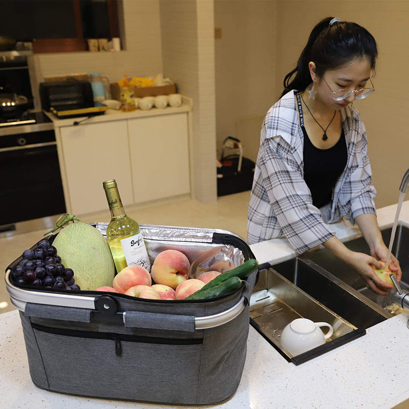 Lar / Produtos / Bolsa térmica e lancheira / Saco térmico / Caixa de almoço grande portátil personalizada, organizador de bebidas, cestos de piquenique a granel duráveis, refrigerador isolado com estrutura de alumínio