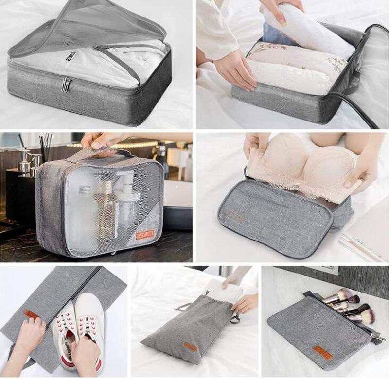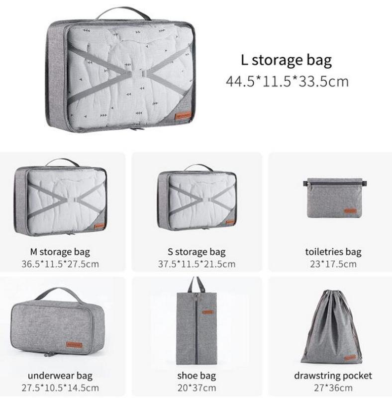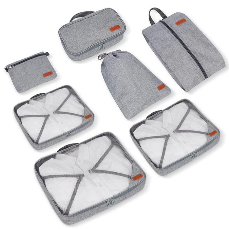 Sacos de armazenamento de mala dobráveis ​​leves 7 peças cubos de embalagem organizadores de bagagem para acessórios de viagem