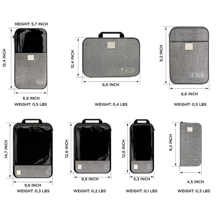 | Item | Conjunto de 7 peças organizador de pano de bagagem de viagem expansível por compressão |