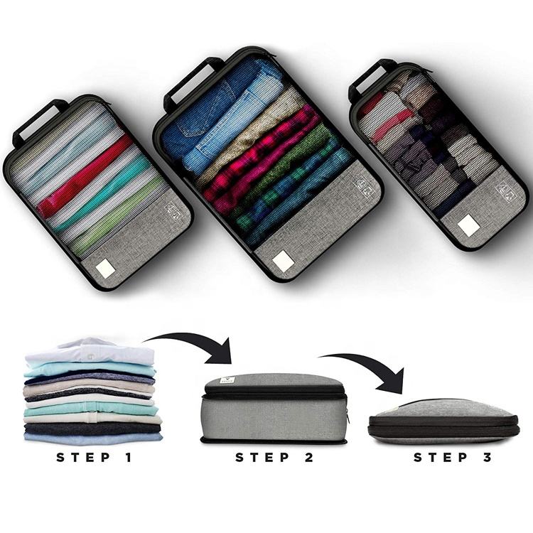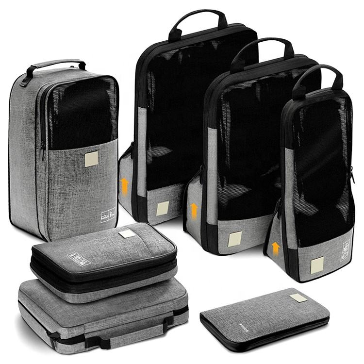Conjunto de 7 peças organizador de pano de bagagem de viagem expansível por compressão