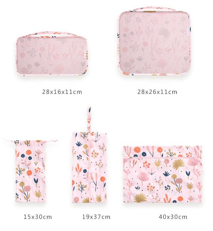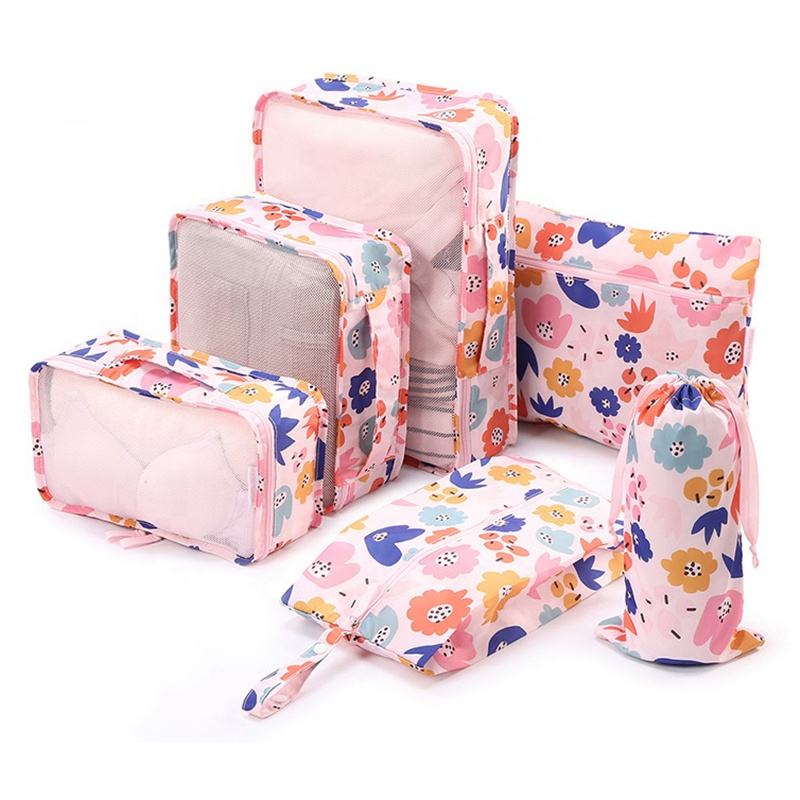 Cubos de embalagem personalizados portáteis de impressão completa à prova d'água leve 6 peças conjunto de mala cubos de embalagem de bagagem de viagem