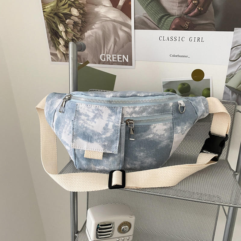 Lar / Produtos / Fanny Pack / Fanny Pack moda elegante menino menina lona estilo chinês engraçado tie dye azul impressão personalizada logotipo Fanny Pack