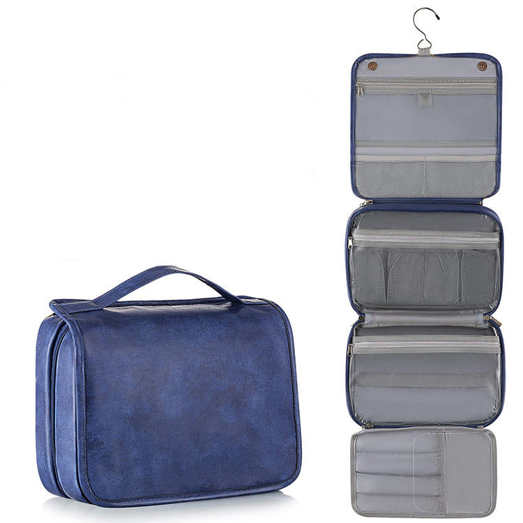 Lar / Produtos / Bolsa de cosméticos e produtos de higiene pessoal / Estojo de Higiene / Gancho de pendurar de couro PU unissex dobrável bolsa organizadora de lavagem de produtos de higiene pessoal logotipo personalizado bolsa de cosméticos maquiagem