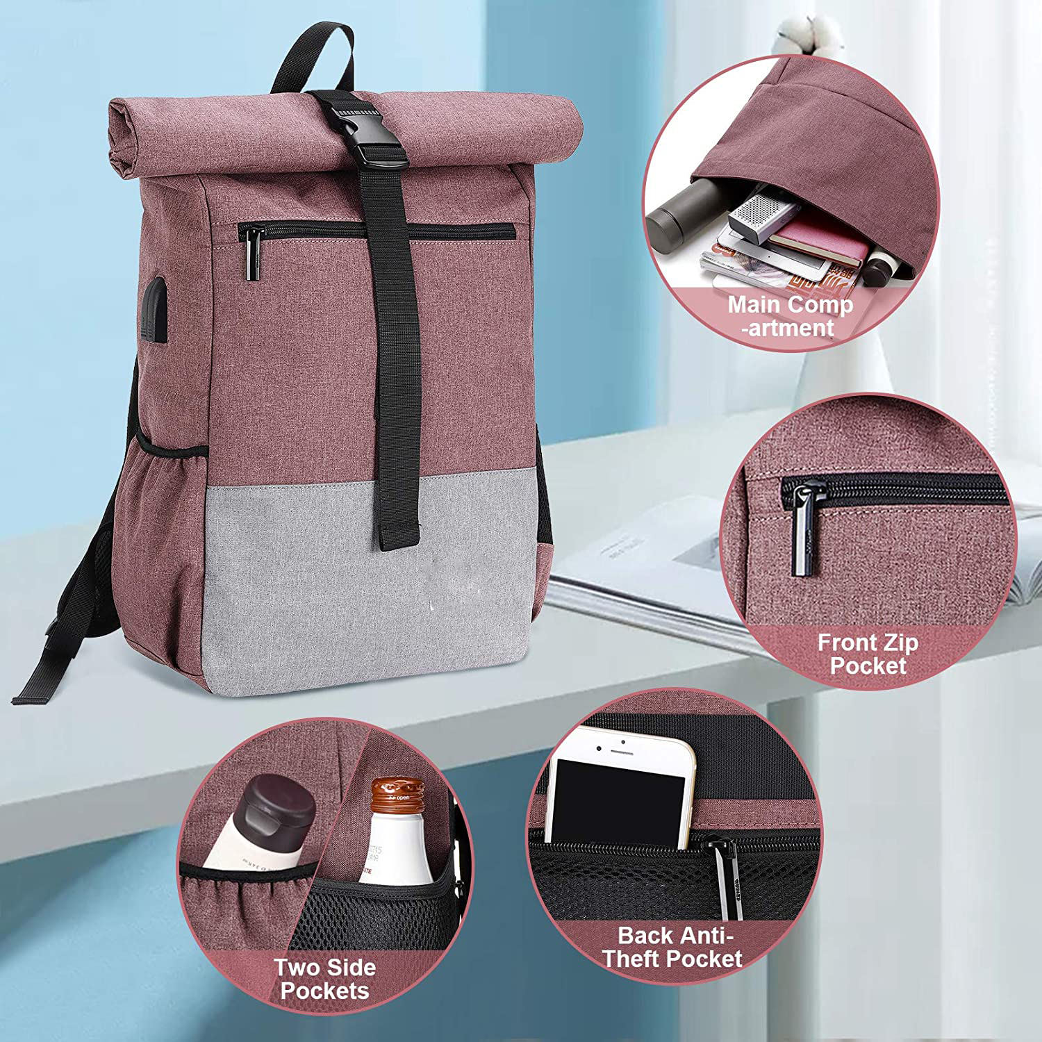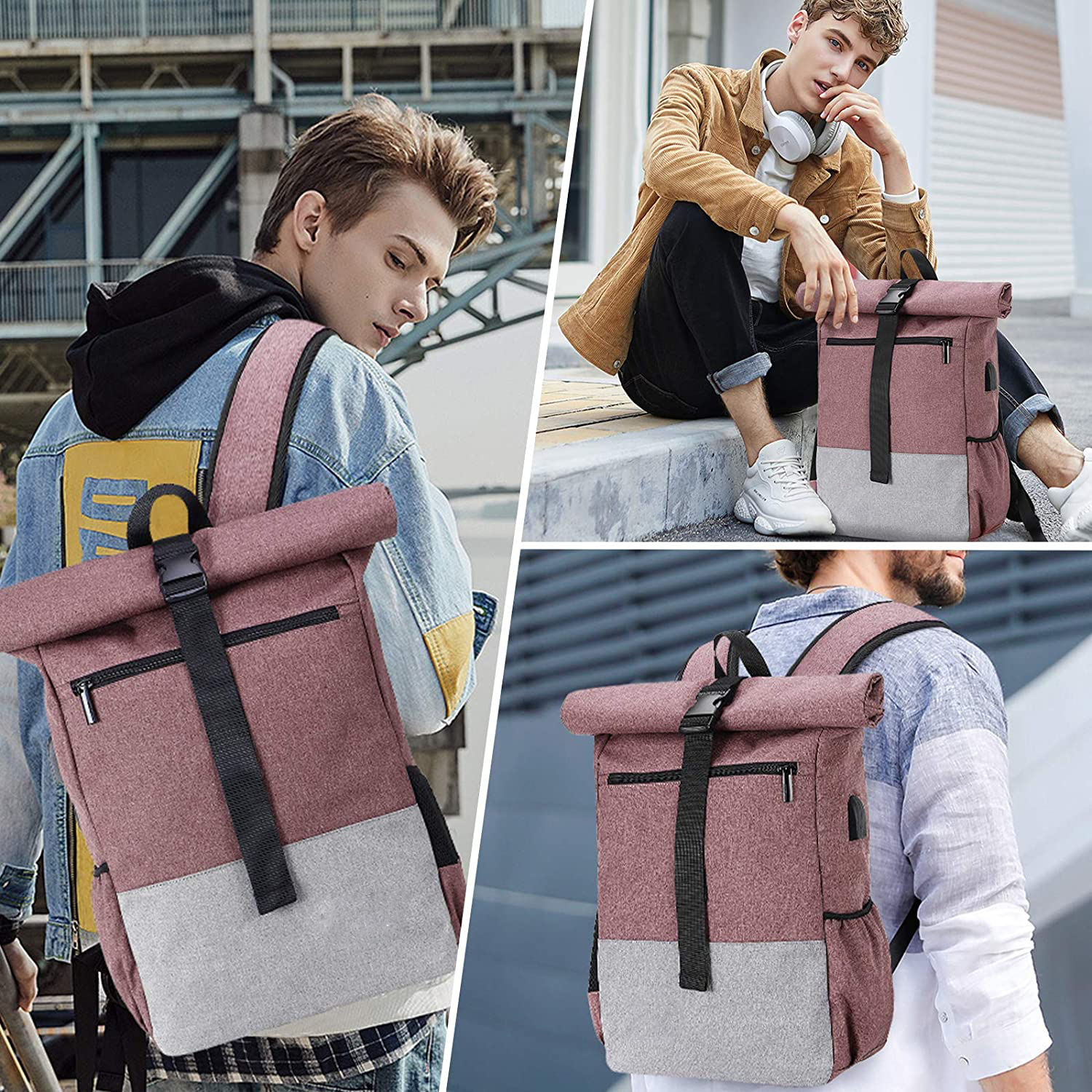 Mochila roll top antifurto masculina feminina reciclada para viagem casual mochila para laptop resistente à água mochila escolar universitária