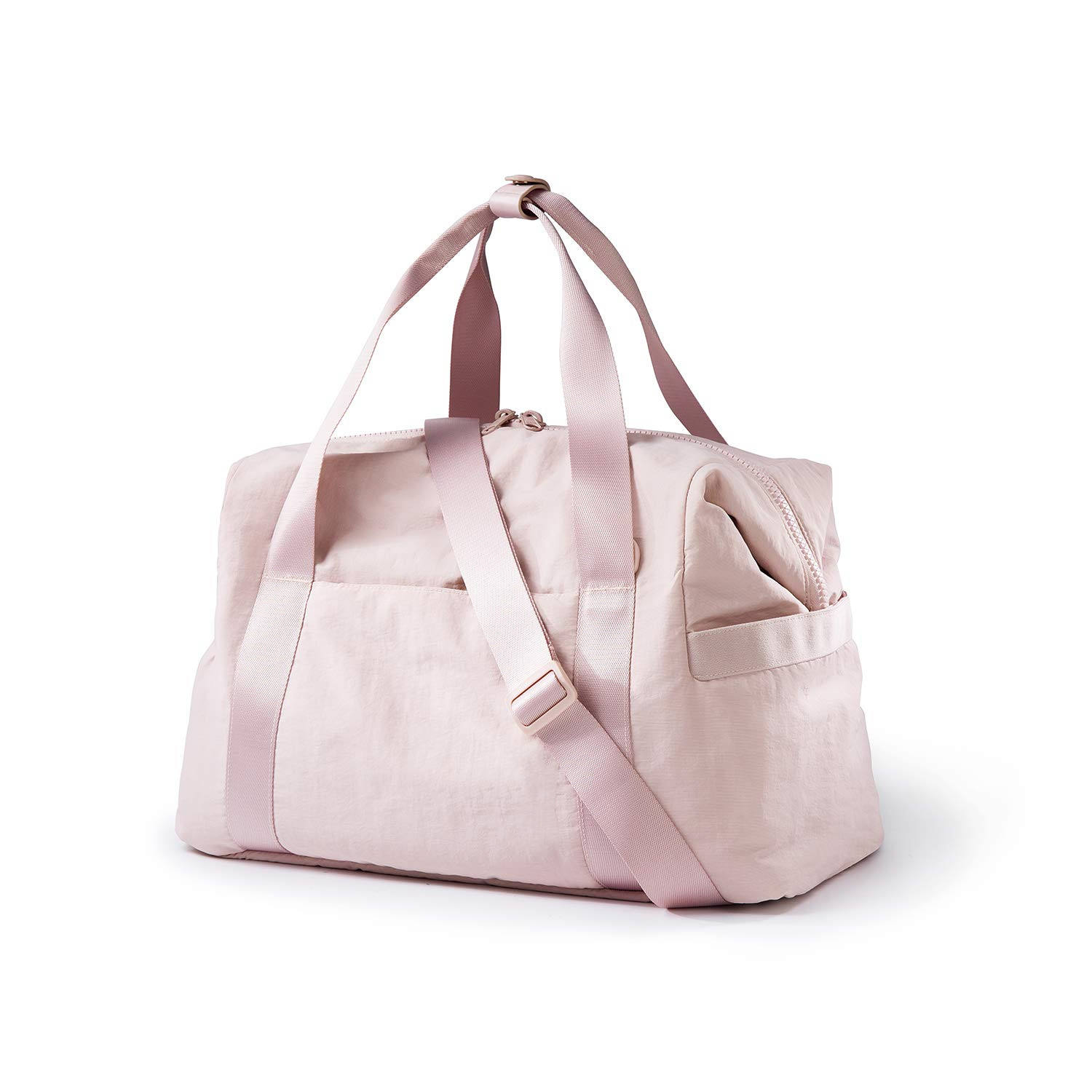 Bolsa de ginástica esportiva feminina de náilon rosa à prova d'água com logotipo personalizado bolsa de viagem grande durante a noite para o fim de semana com compartimento para sapatos
