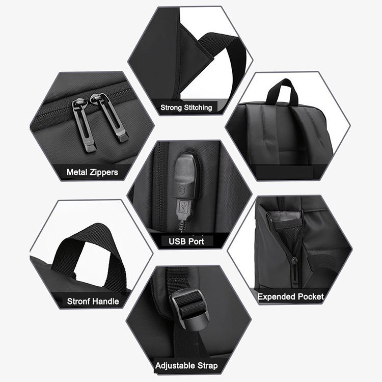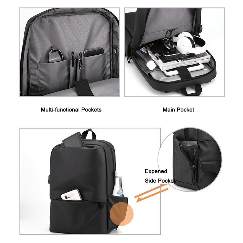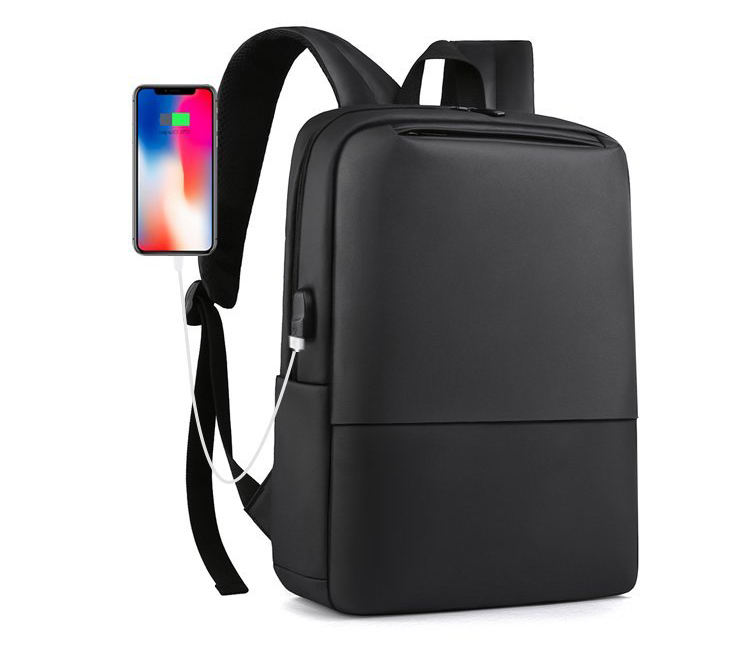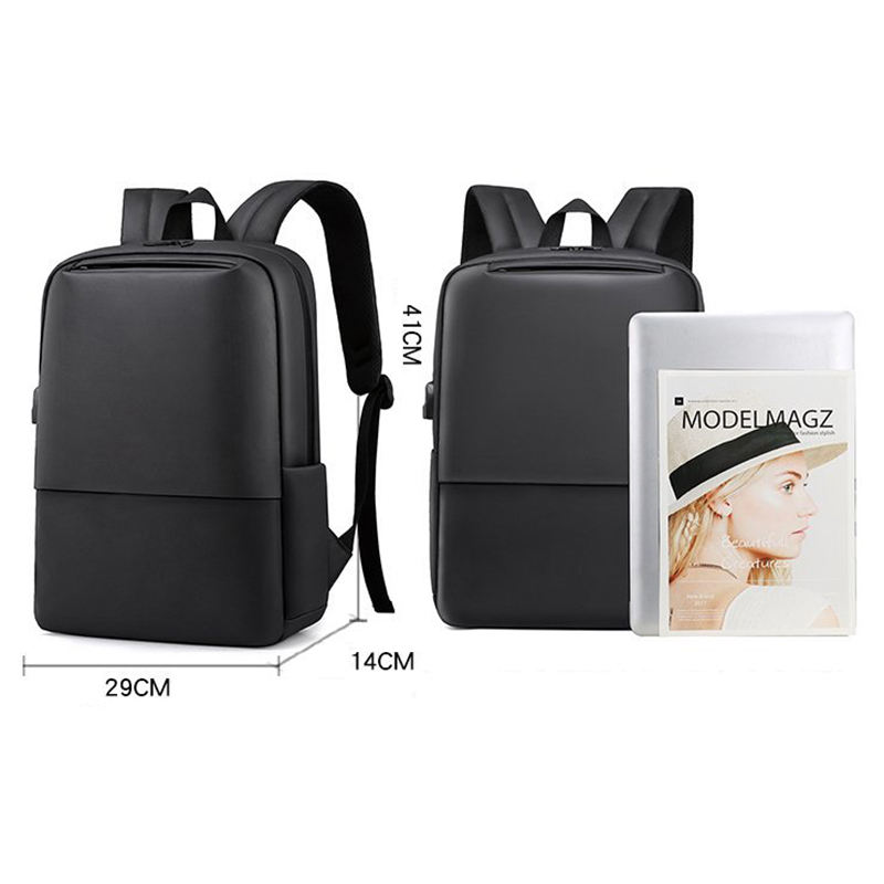 | Mochila escolar preta estilosa para computador portátil à prova d'água com porta de carregamento USB | ||