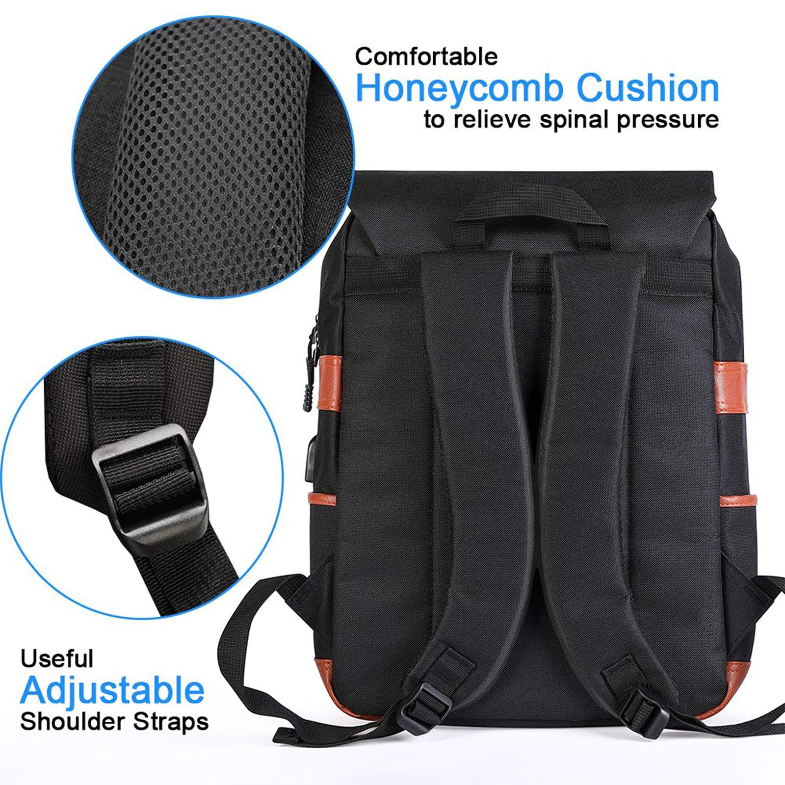 Mochila para laptop com porta de carregamento USB de 15,6 polegadas