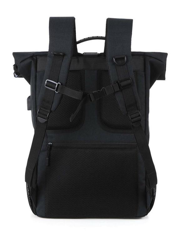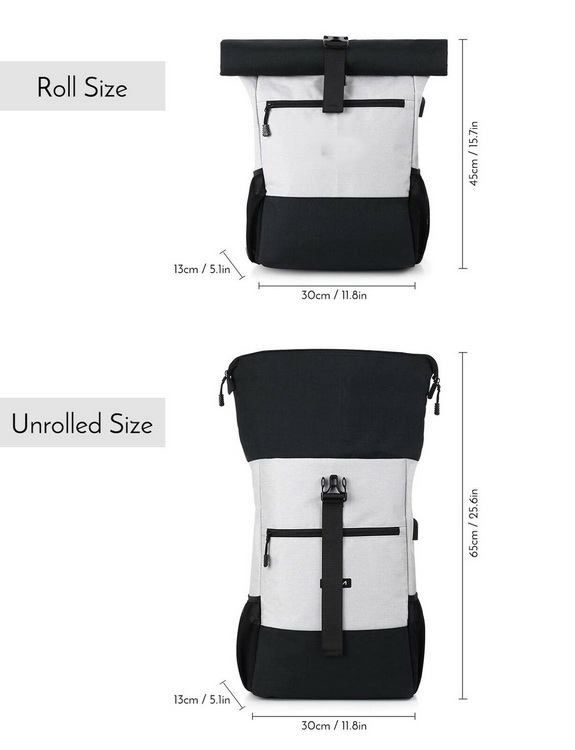 | Item | Mochila roll-top rpet durável de bom design, mochila roll-up com porta de carregador USB |