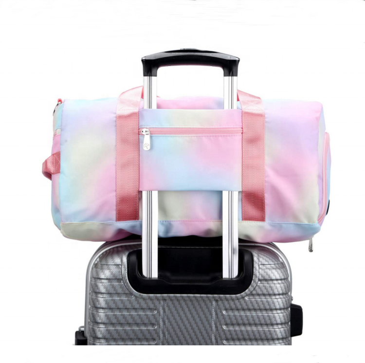 Portátil Custom Print Logo Weekend Overnight Luggage Shores Pocket Duffel Bag Colorida Rainbow Crossbody Bag Sport