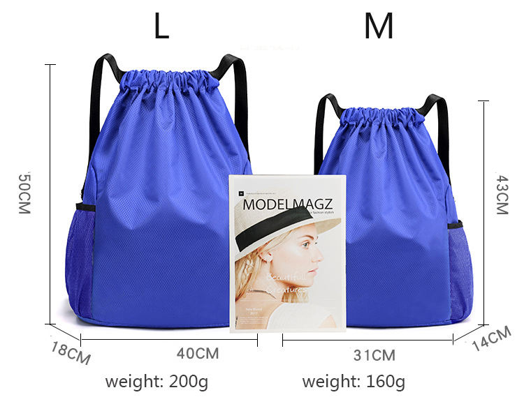 | Nome | Mochila impermeável com cordão e suporte para garrafa de água | ||||||