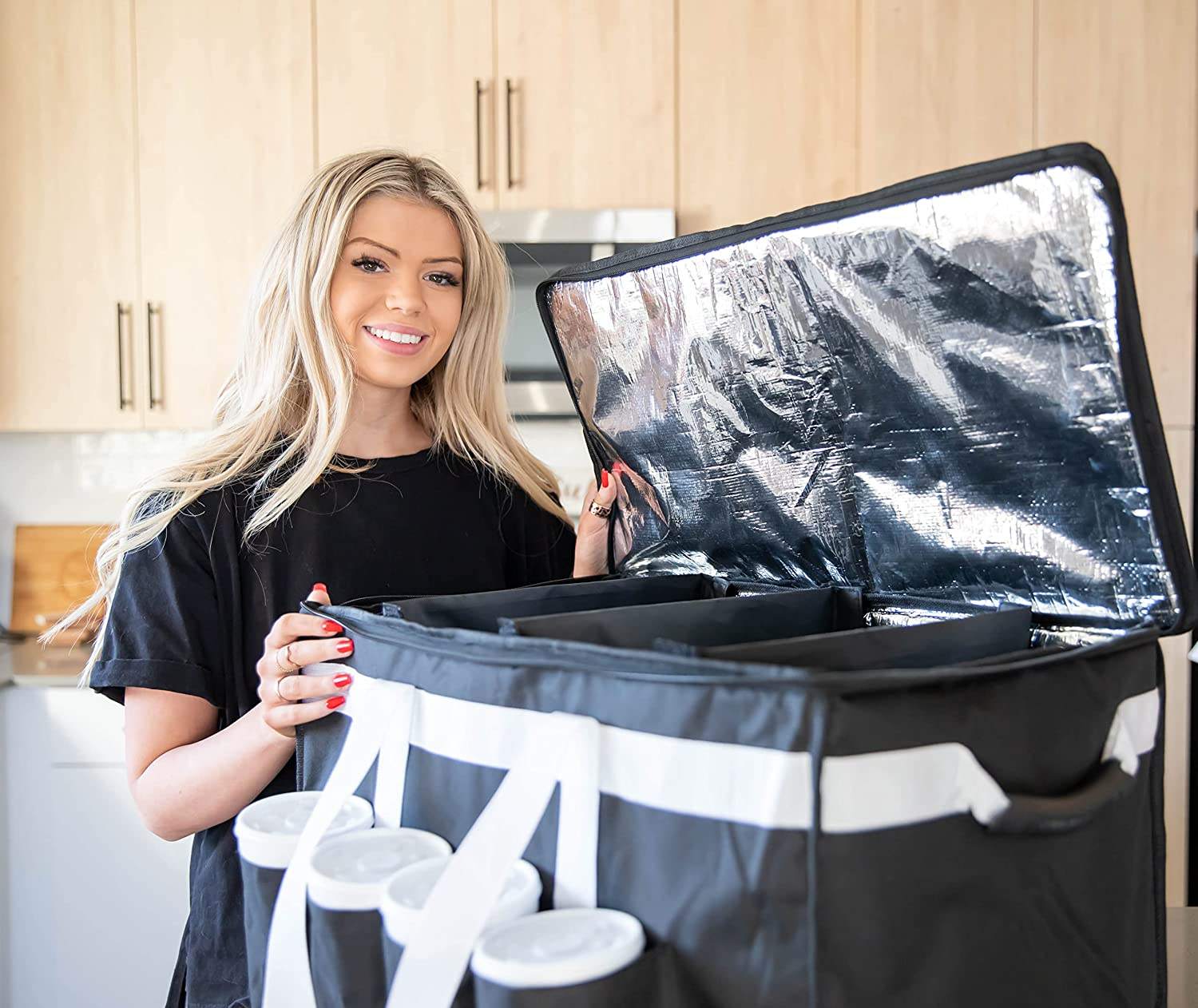 | Saco de entrega de comida isolado com porta-copos Saco de porta de entrega de comida quente e fria de alta qualidade | ||