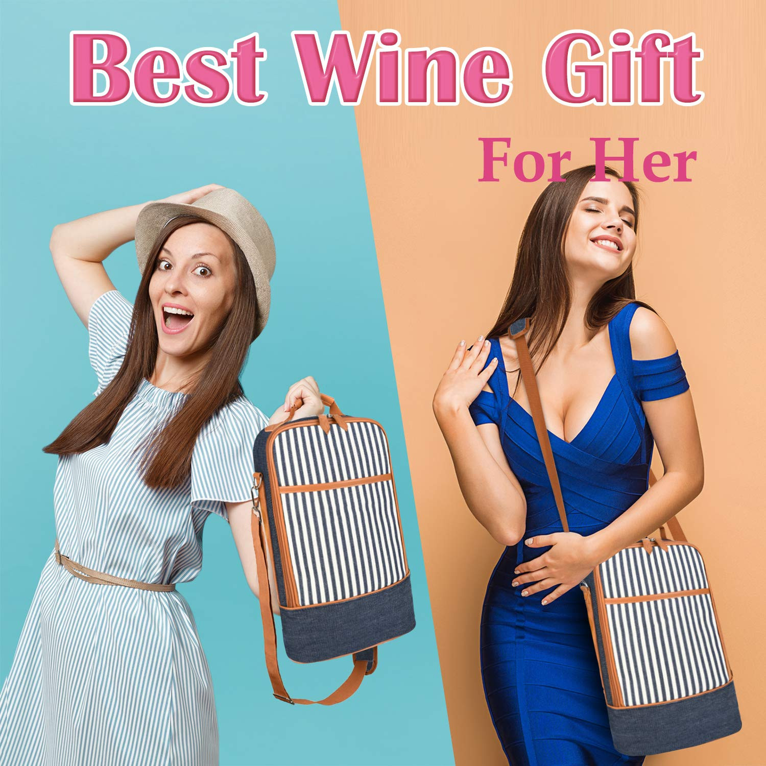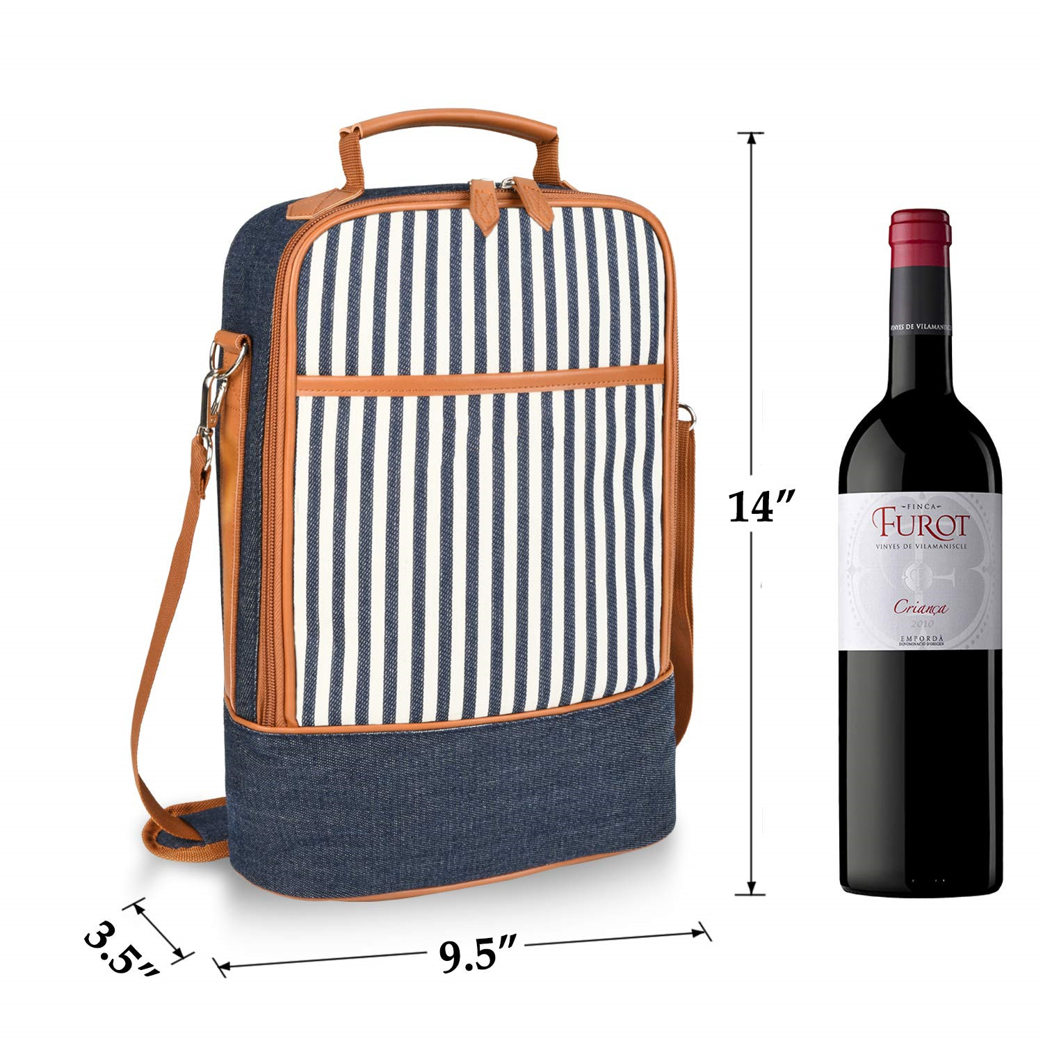 Saco refrigerador de vinho com 2 garrafas isolado personalizado para presente masculino feminino com divisores e alça de ombro acolchoada