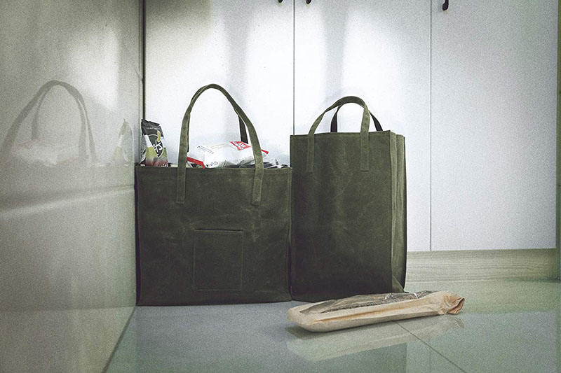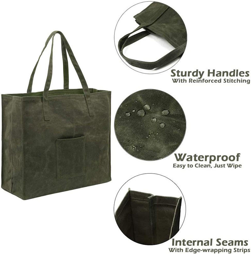 | Nome | Sacola verde resistente reutilizável encerada Canavs sacola de compras de mercearia com alça de ombro longa | ||||||