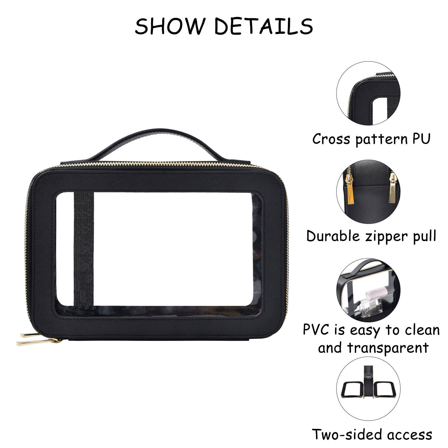 | Nome da Produção | Venda imperdível bolsa de maquiagem transparente bolsa organizadora de maquiagem à prova d'água bolsa cosmética transparente com zíper |
