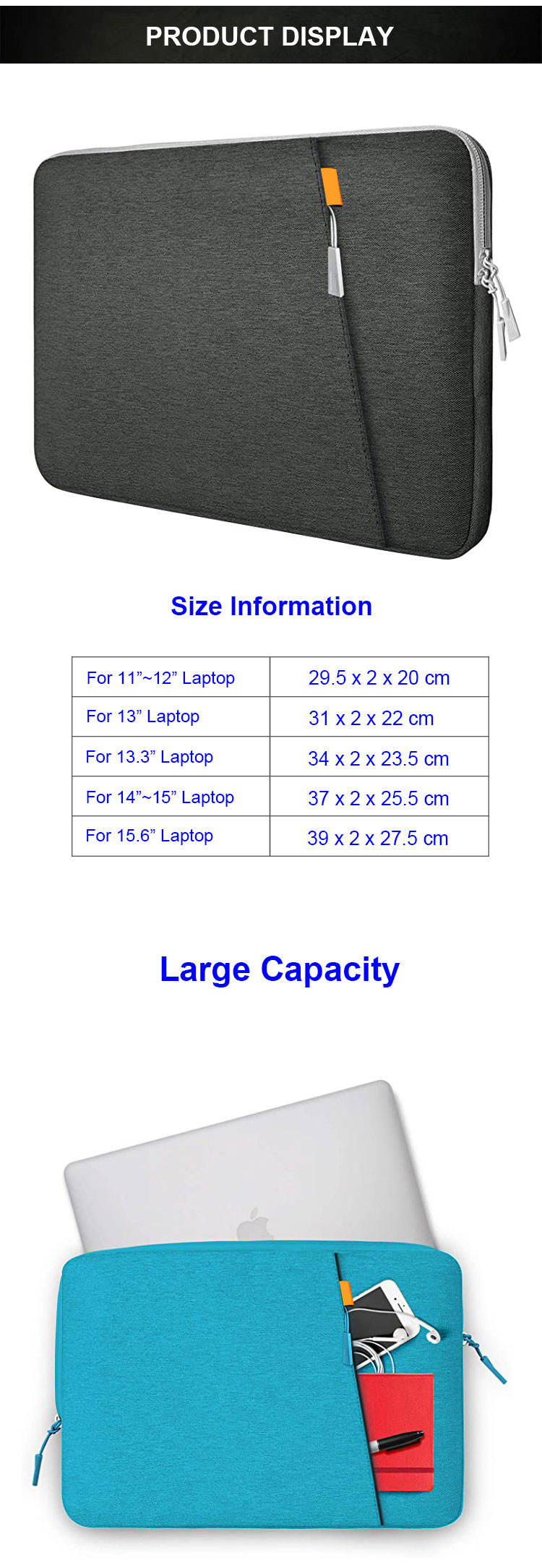1. Compartimento e Tamanho:   Compartimento principal com zíper + bolso frontal.Tamanho: adequado para 13' e 13,3' e 14' e 15,6'